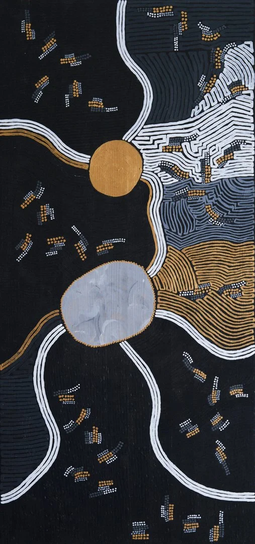 The series is anchored by foundational works created in Madrid. Stark panels that represent the “conception” of the idea and the navigation of a silent, interior space. Arriving in Doha provided the expansive perspective and tranquility needed to realize the vision. The city’s unique pace and the openness of its landscape offered a sense of creative permission, allowing the work to unfold without judgment.