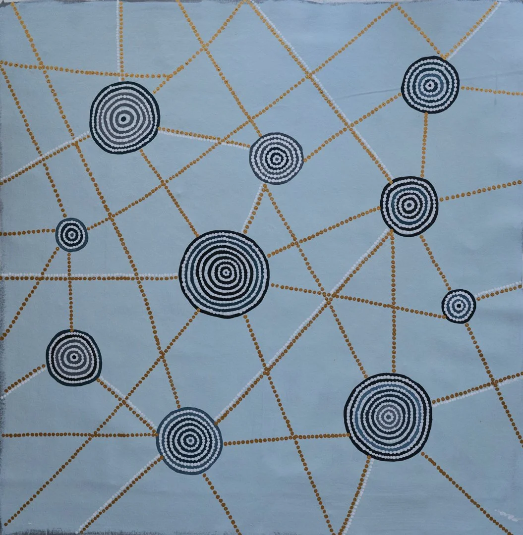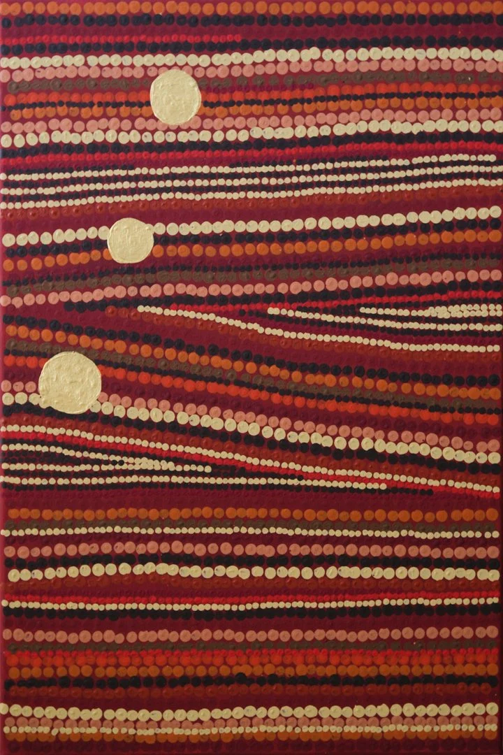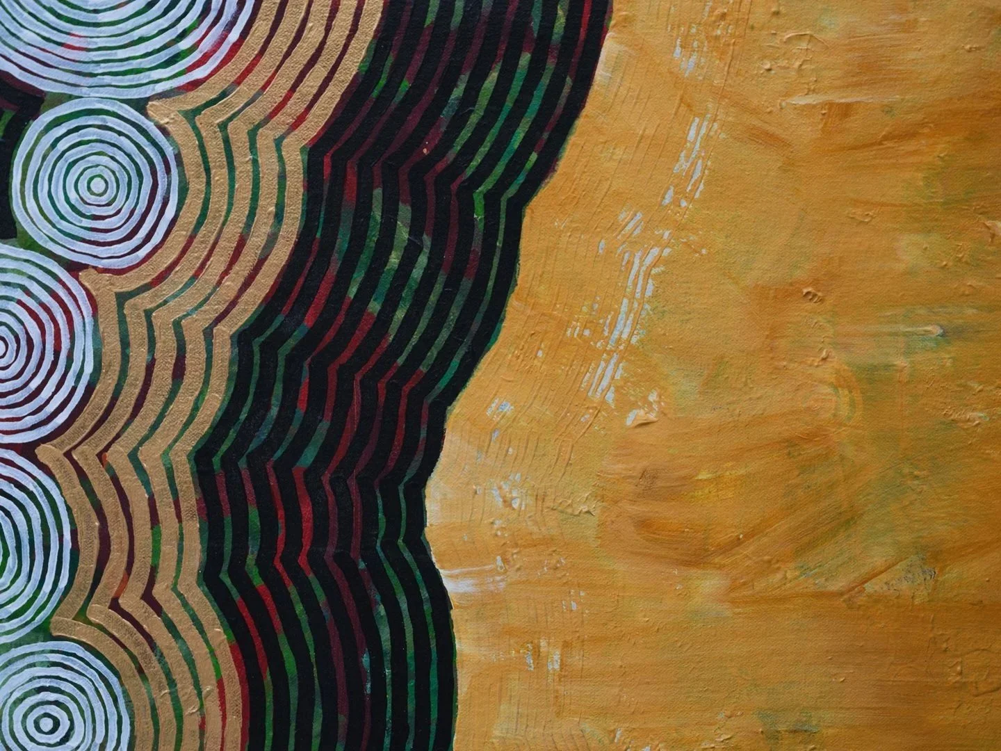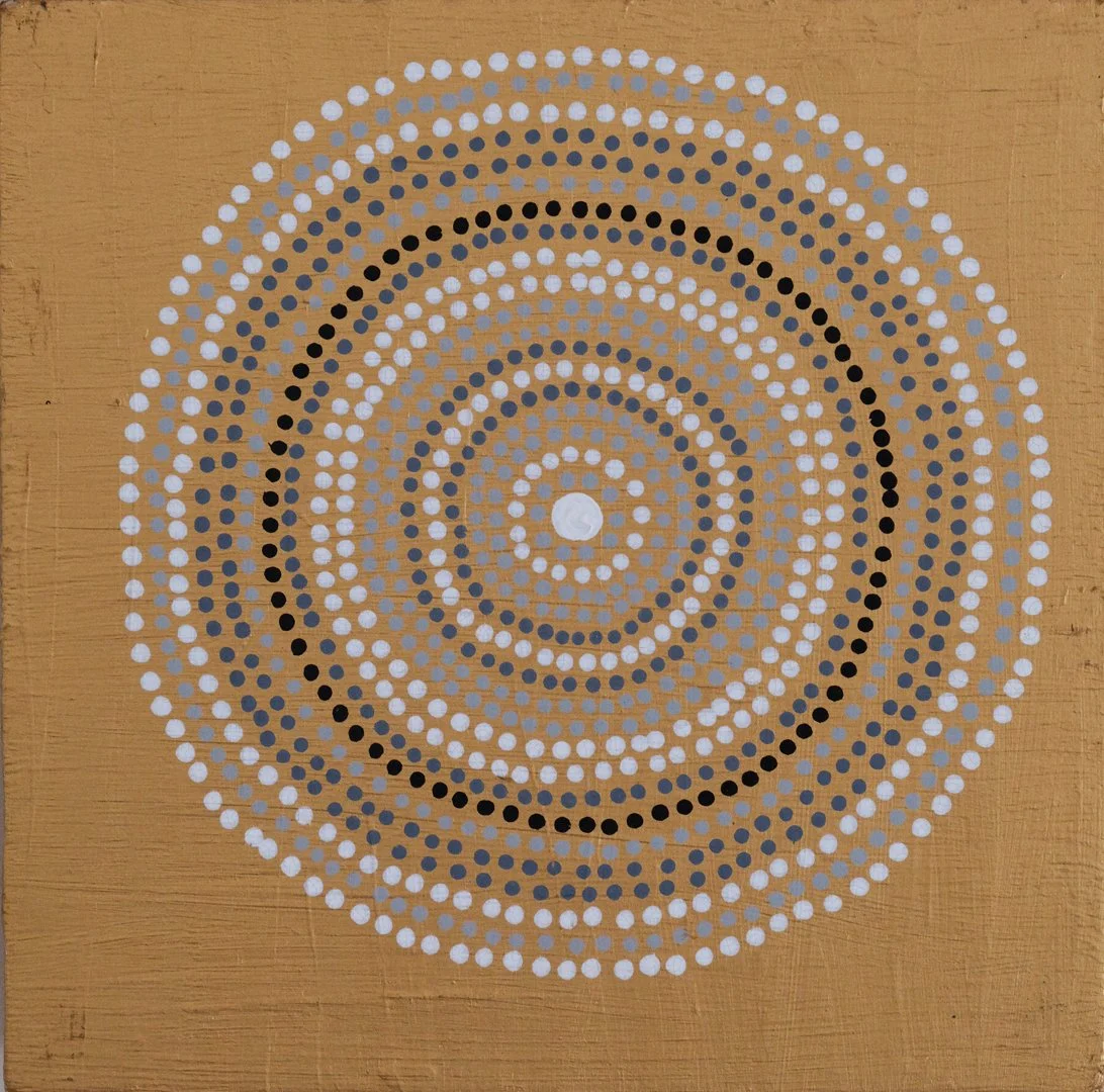 Formally, the series relies on repetition and circular motifs. In these compositions, repeating colors act as a form of personification, recurring voices or identities that move through the work, evolving in response to the environment. These palettes are not merely decorative; they are the “protagonists” of the series, reflecting the warmth and elemental energy of the Gulf.